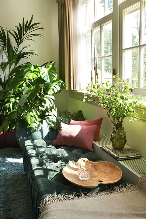 My client Miss R. asked me to help her with her apartment, mainly the living area. The living area had a huge sofa, dining table with chairs and a plant. We discussed her needs, wants and likes and came to a concept: Cozy, warm, semi posh and full of colour. A place suitable for hanging out with friends, lounging and eating, all in a very informal setting. I created a concept en custom colour scheme, taking into account the elements “to keep” such as the floor. We got rid of the dining table, replaced all furniture, changed the set up of the room and implemented the new colour scheme. The furniture is a mix of vintage and new items. Photography by Noortje Knulst.